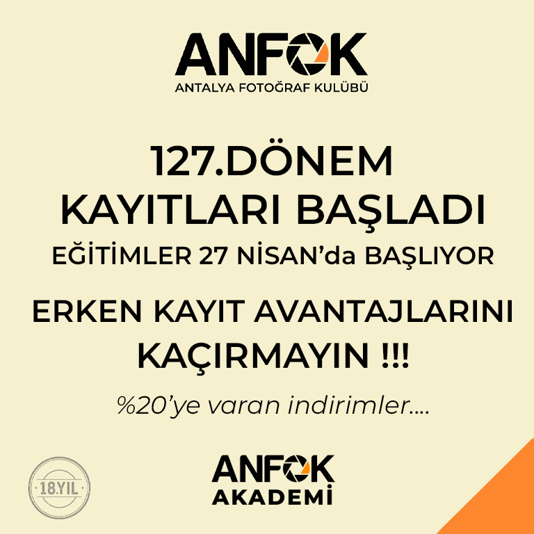 Anfok antalyada eşi bulunmaz bir fırsat bence, Aykut hoca gerçekten ilgisi sabrı ve anlatım düzeyindeki profesyonelliği ile fotoğraf çekmenin tüm inceliklerini öğrencilerine en kolay yoldan ögretiyor. Teşekkürler Aykut hocam.