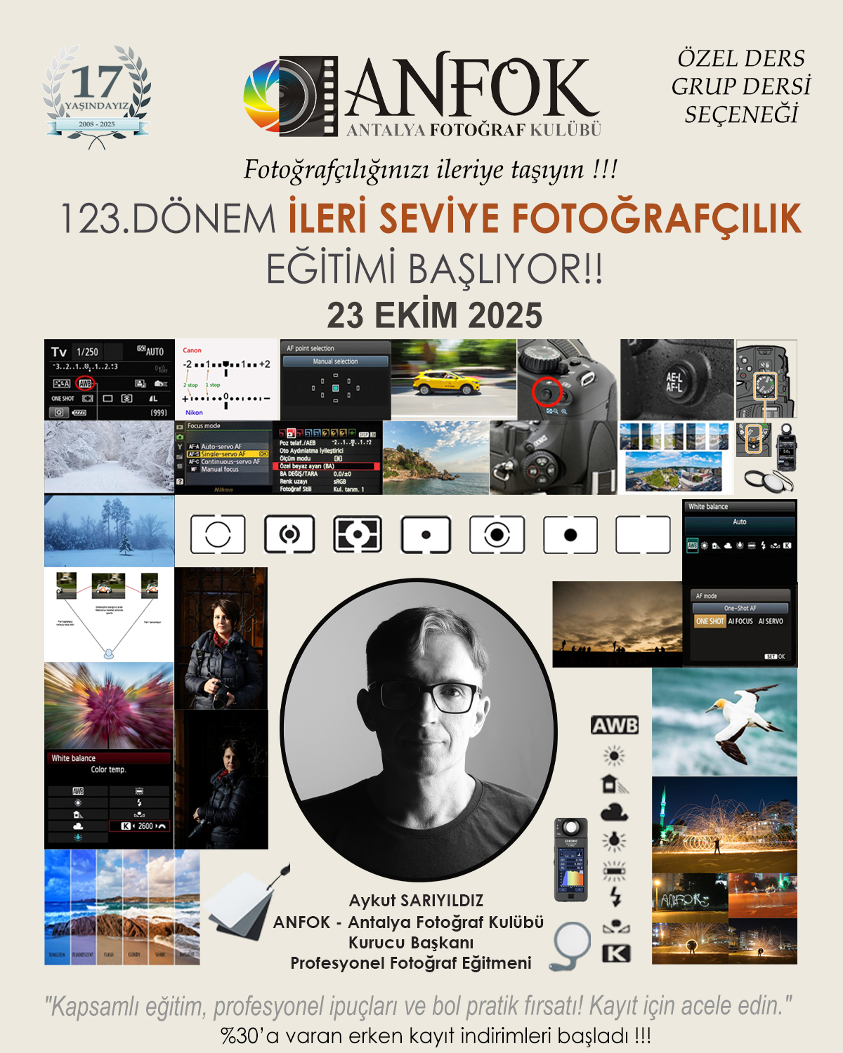 İleri Seviye Fotoğrafçılık Eğitimi Anfok Kurucu Başkanı Aykut Sarıyıldız tarafından verilmektedir.