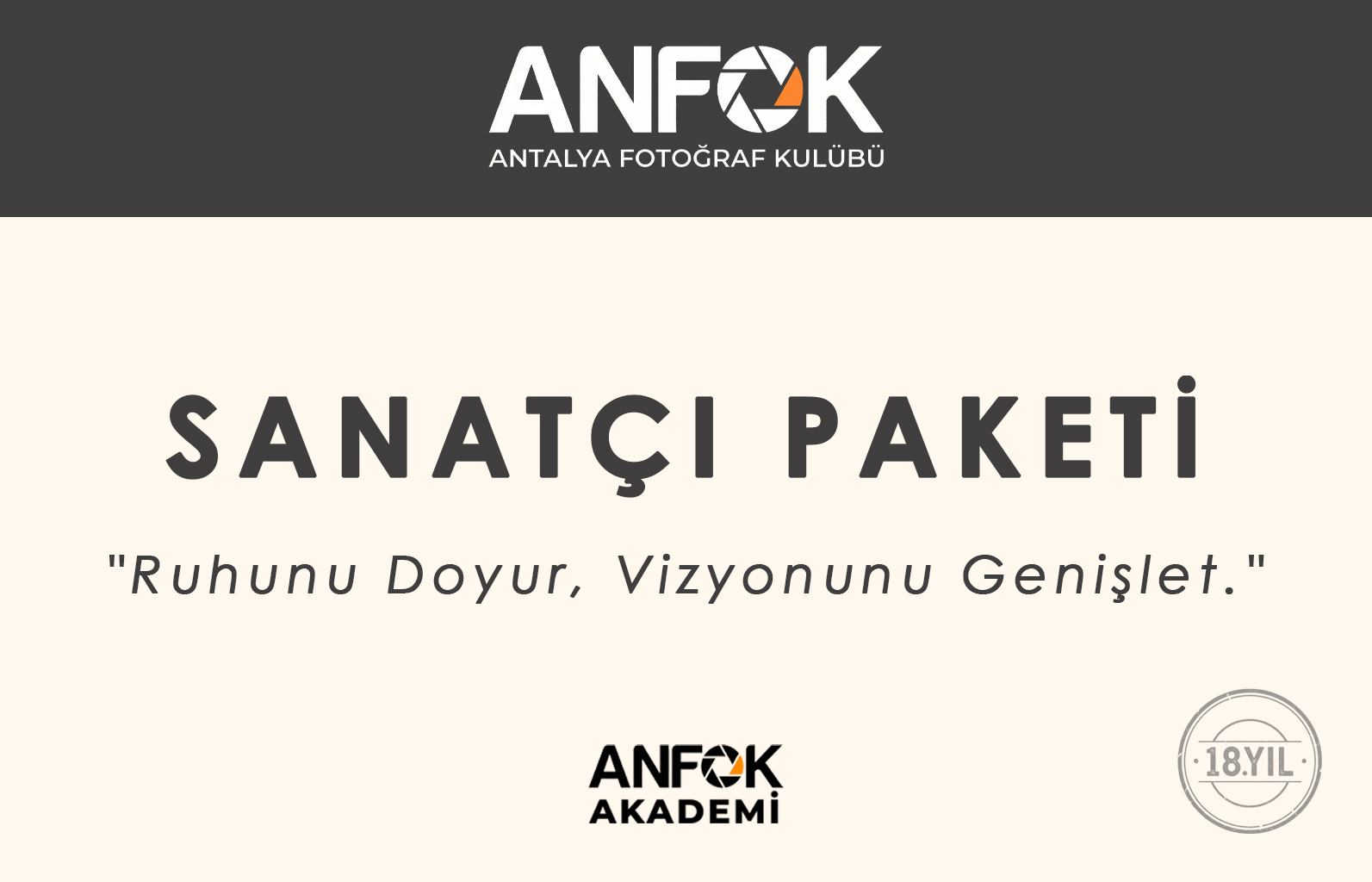 Bu paketi aldıktan sonra; Sokak, Portre ve İleri Kompozisyon gibi “Sanatsal Uzmanlık Atölyeleri” ile vizyonunuzu dilediğiniz kadar derinleştirebilirsiniz.”